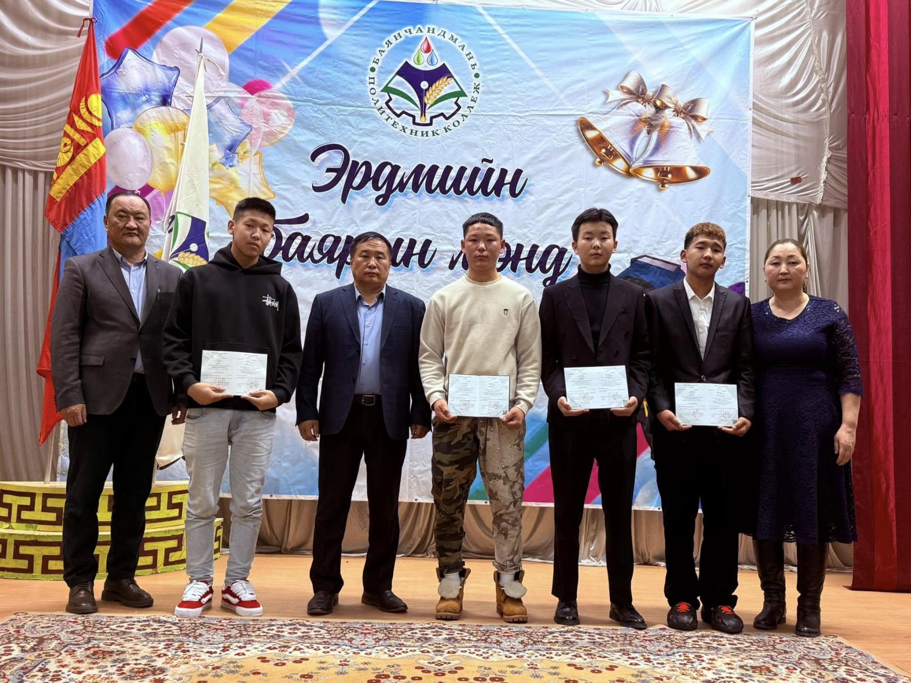 Боловсрол, шинжлэх ухааны яамны харьяа магадлан итгэмжлэгдсэн Төв аймгийн Баянчандмань суман дахь Политехник Коллежийг 2024-2025 оны хичээлийн жилд 98 төгсөгч төгсөж байгаагаас мэдлэг, ур чадвараараа бусдаас ялгарсан шилдэг суралцагчдыг шагнаж урамшуулан, түншлэлийн хамтын ажиллагаатай аж ахуй нэгж байгууллагаас ажлын байрны урилга гардуулах ёслолын арга хэмжээ зохион байгуулагдав.